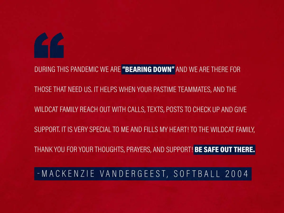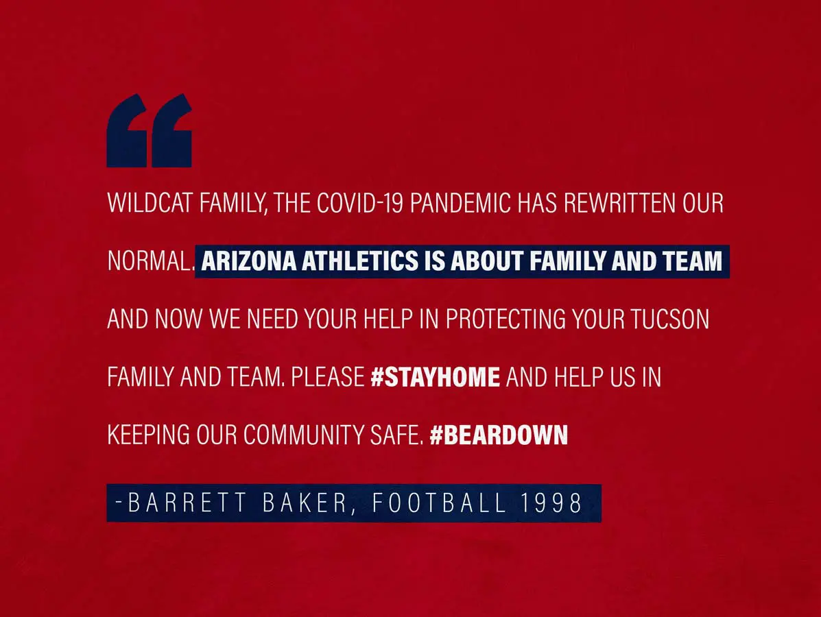 Student-athletes are the core of what we do at Arizona Athletics, and we all feel a great sense of pride in seeing ambassadors of Arizona embodying the values and characteristics of being a Wildcat. They are compassionate, adaptive and determined. We've seen current and former student-athletes rise to the occasion during this global pandemic, and that is something we all can be proud of.
