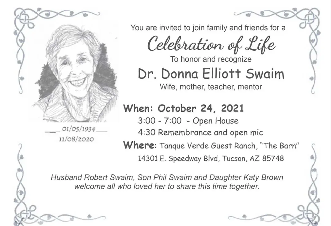 Alumni letterwinners are invited to join family and friends for a Celebration of Life to honor and recognize Dr. Donna Swaim.