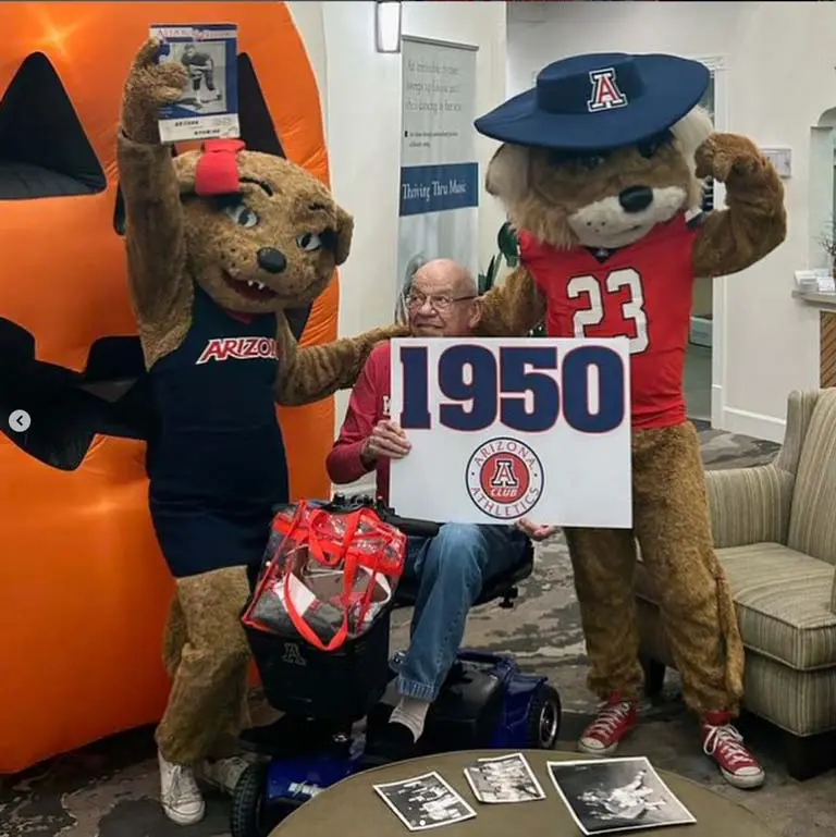 1950's Arizona Football Letterwinner Tex got a visit from his favorite Wildcat couple Wilbur and Wilma! Thanks for being a proud Wildcat Tex!