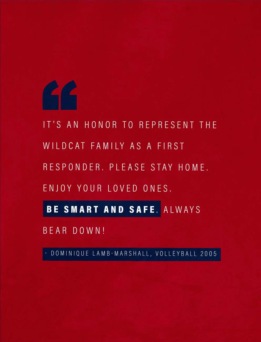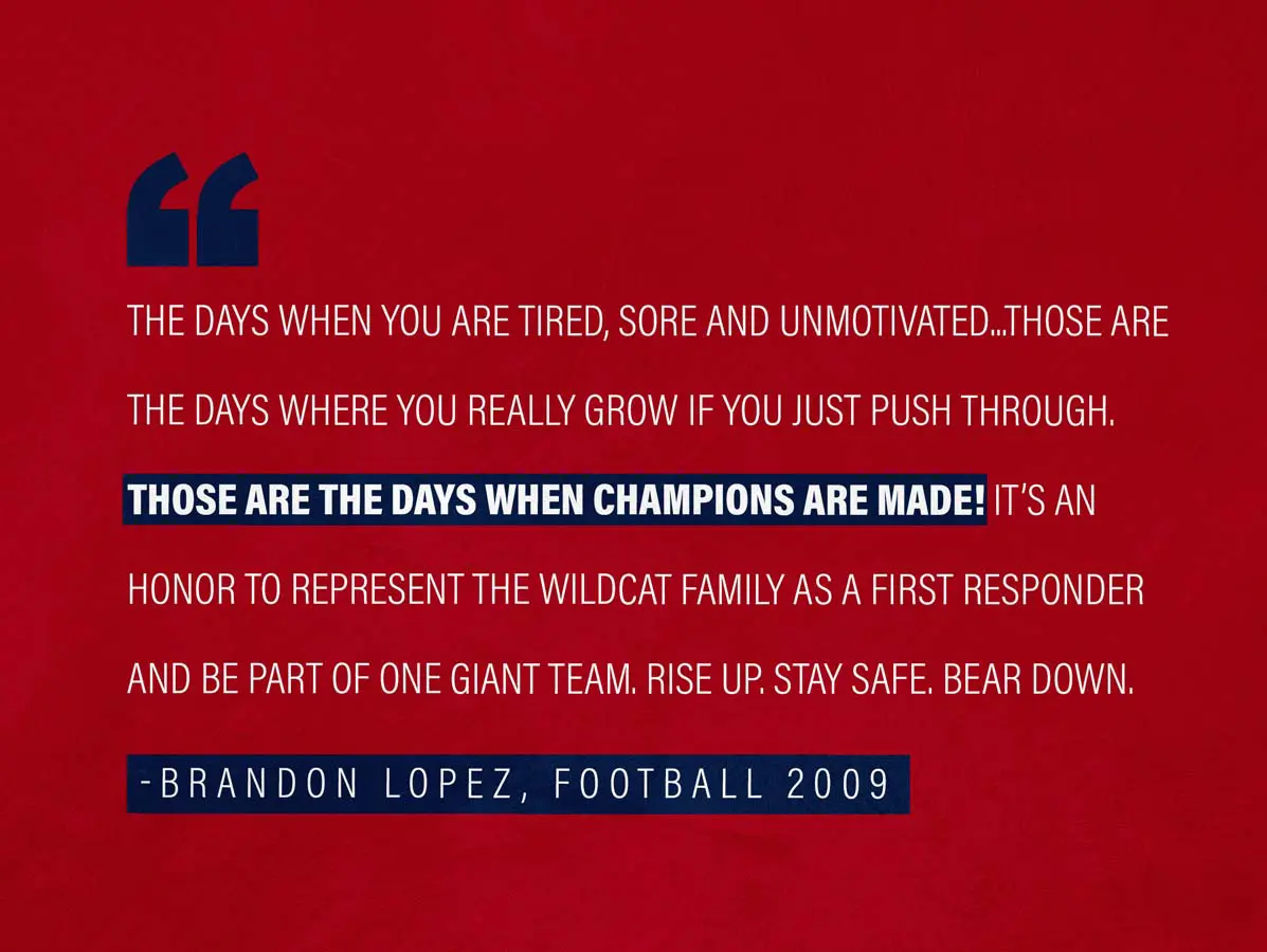 The entire Wildcat Family is proud of the 2020 class of University of Arizona graduates for representing our department, University and Southern Arizona with honor. They have achieved greatness on the field, in the classroom and in our community, and that excellence is greater than the adversity faced in this pandemic. The class of 2020 truly are Wildcats for Life and the next generation of leaders in their communities.